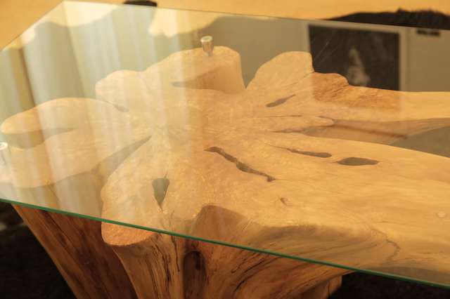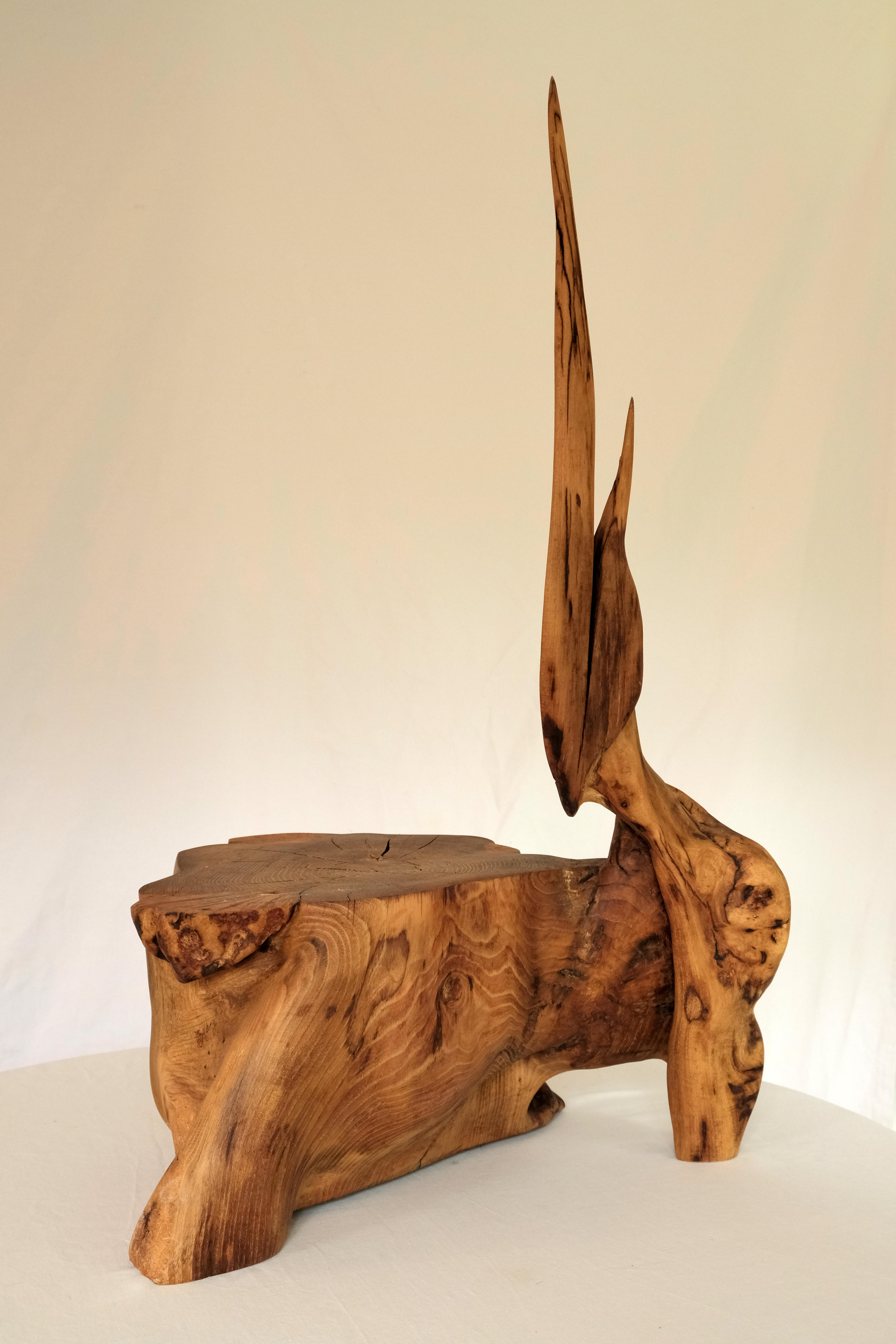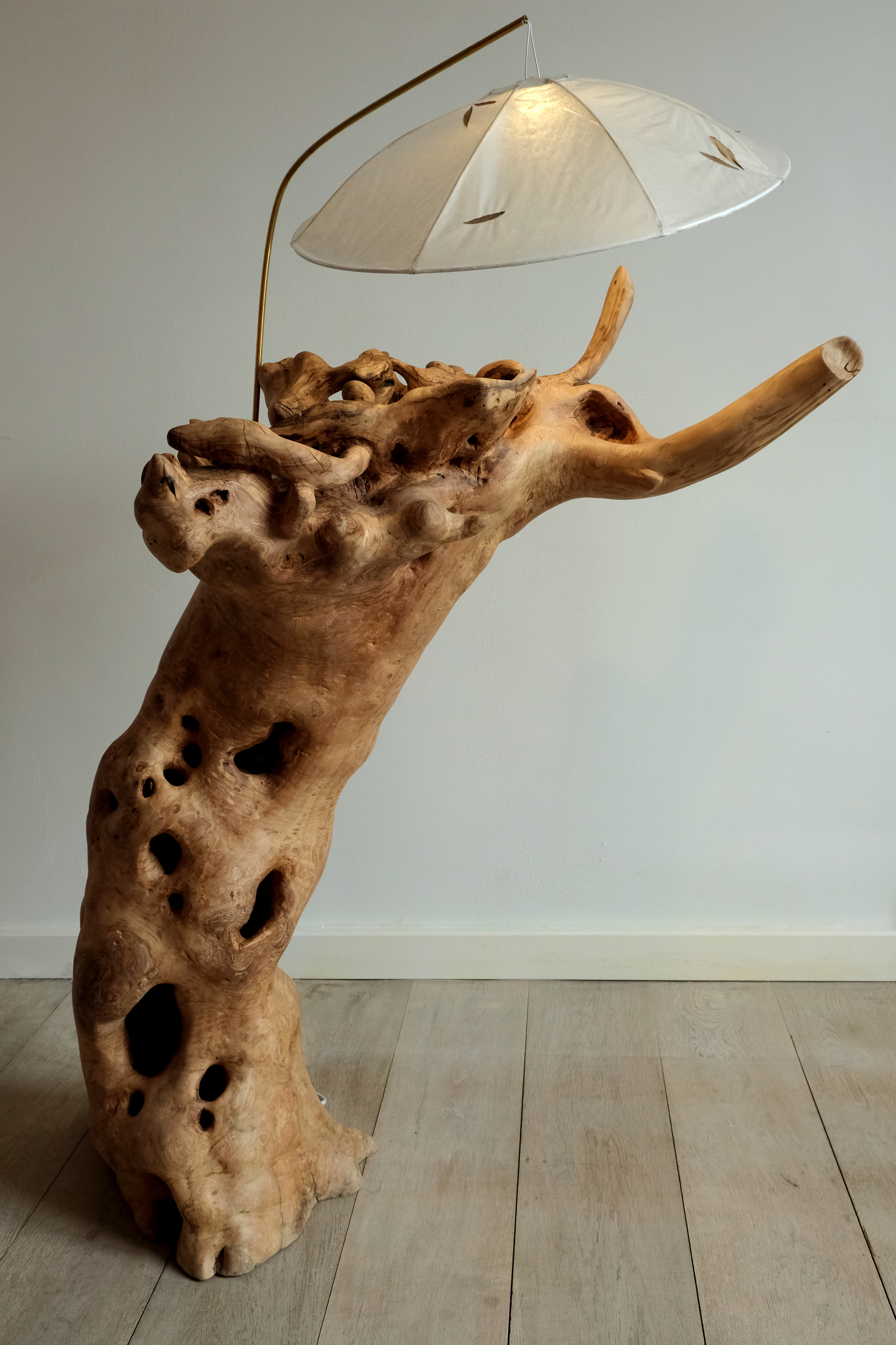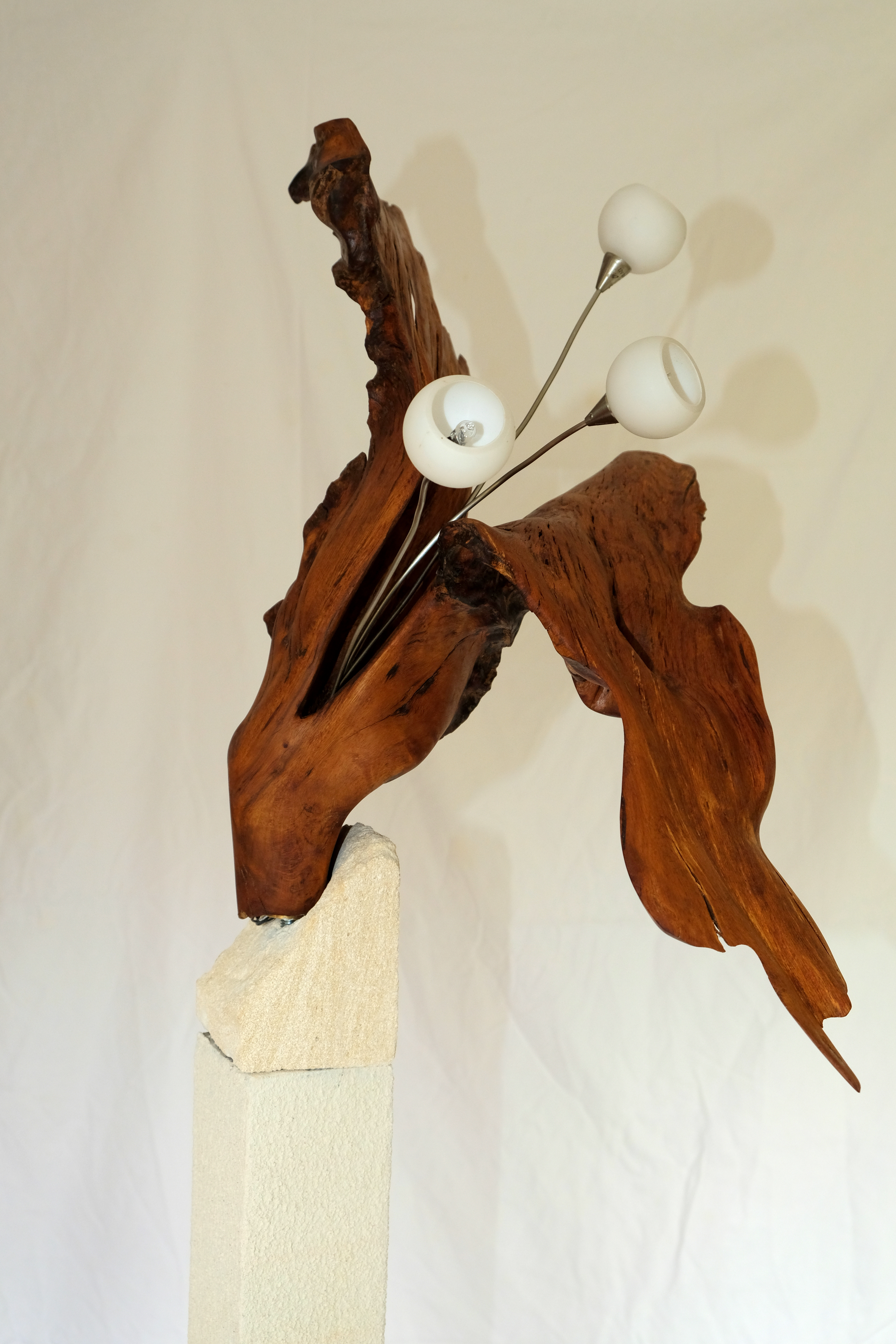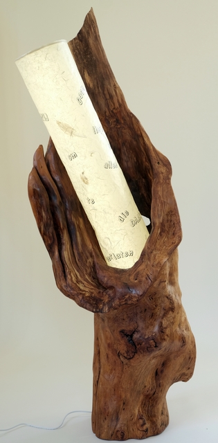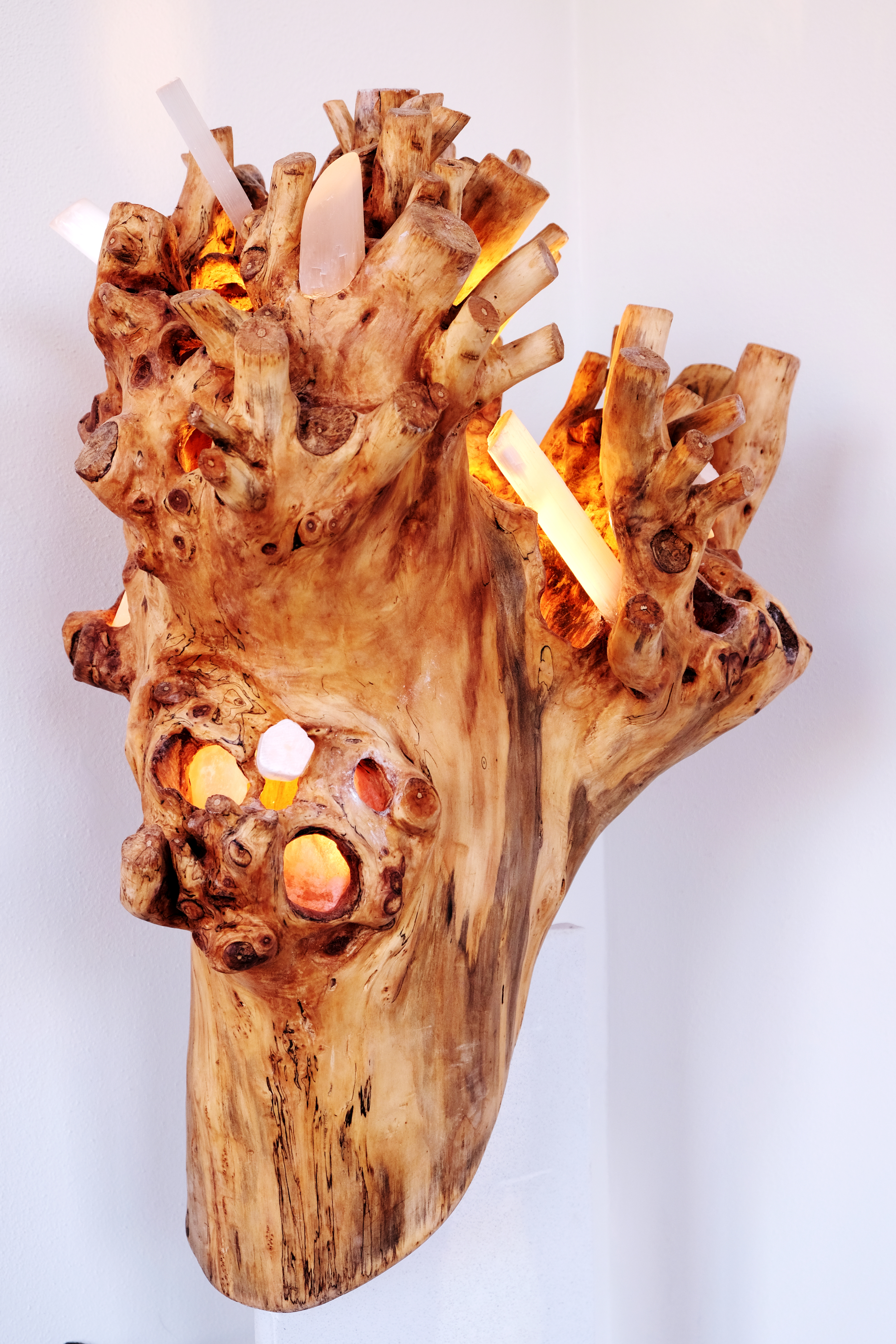 wraak van de olifant (hout van vlinderstruik. seleniet en led verlichting)