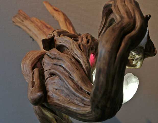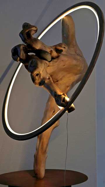 ballerina (rivierhout met ingegroeide stenen. houten hoepel, optische vezel met led verlichting)